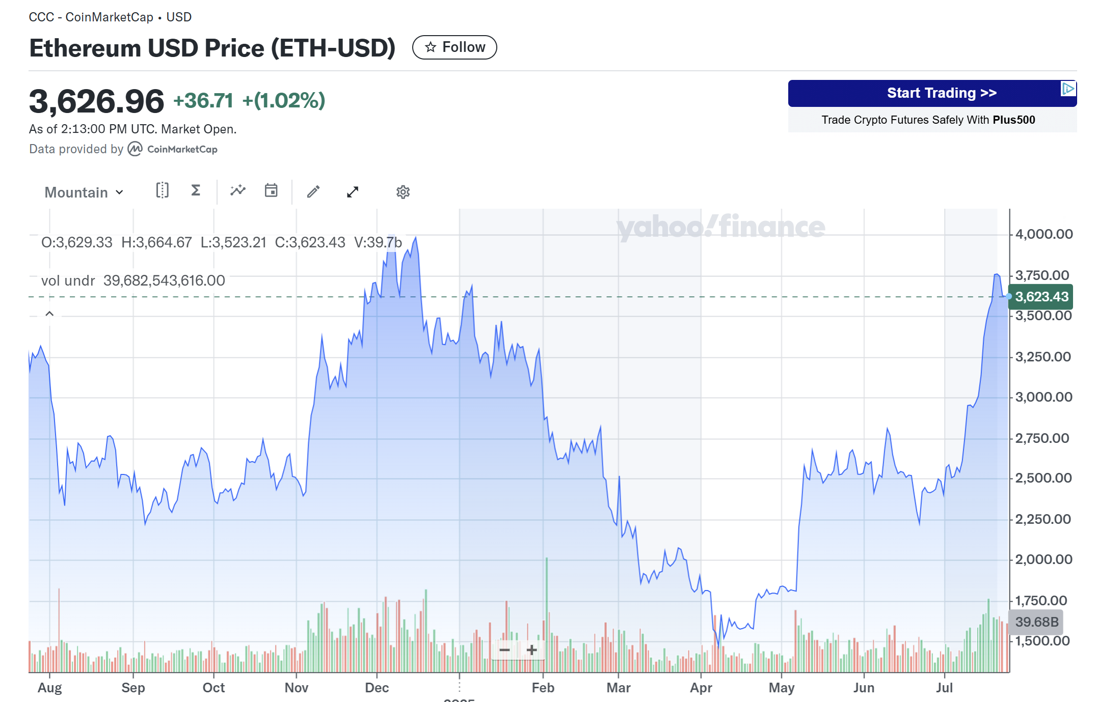 이더리움 가격, 최근 3개월간 +40% 급등!